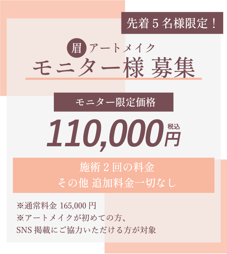 ※B-BROW施術のモニターは、追加料金は一切ございません。